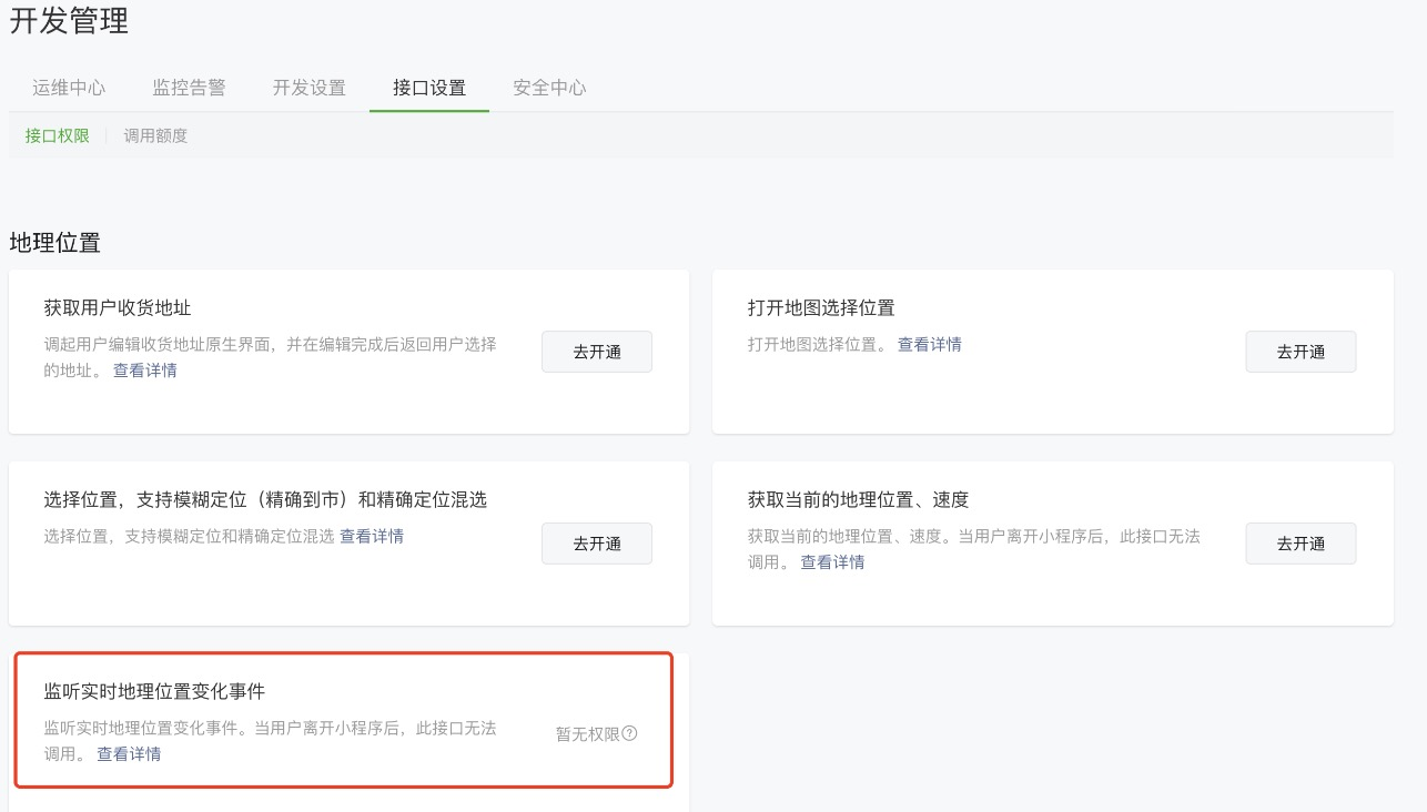 之前看帖子说是需要在“提交接口审核时在接口申请原因描述中清楚说明对应的小程序appid、小程序昵称、具体的背景及当前的问题,并承诺该小程序上线或更新迭代后也不会调用wx.onlocationChange接口,后续微信将会在不影响现网版本的前提下关闭我们小程序的wx.onlocationChange接口权限”,但是我们小程序并非可申请该服务类目的行业,所以无权申请该服务类目后再去申请开通接口操作。。。