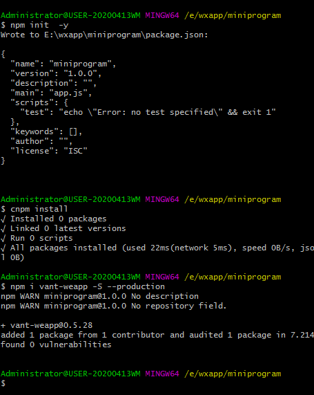 操作都是在miniprogram下。