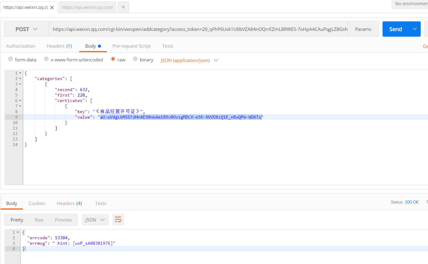 你好,53304错误信息指已经存在这个类目了,无需再添加,后续文档会补充,感谢反馈