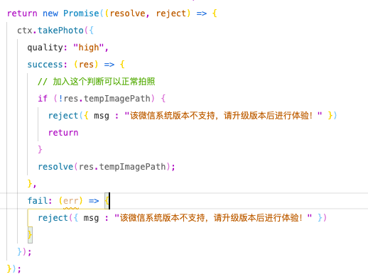 但是在加上两行reject之后问题意外的被解决了,可以正常拍照。有遇到同样问题的可以试一下