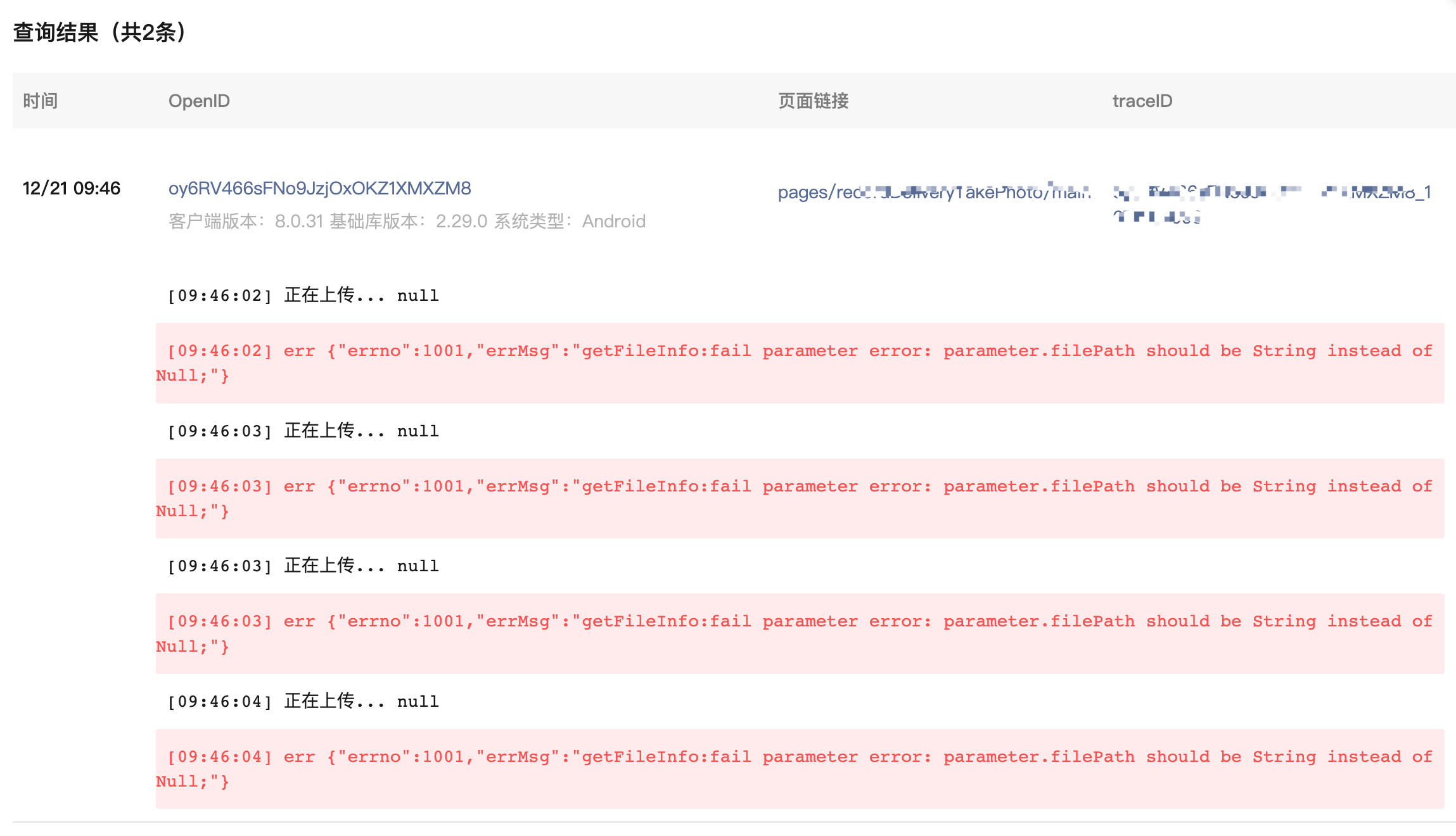 拍照上传 回调返回null,目前安卓系统出现这个问题,官方解答一下, errMsg: "uploadFile:fail parameter error: parameter.filePath should be String instead of Null;"