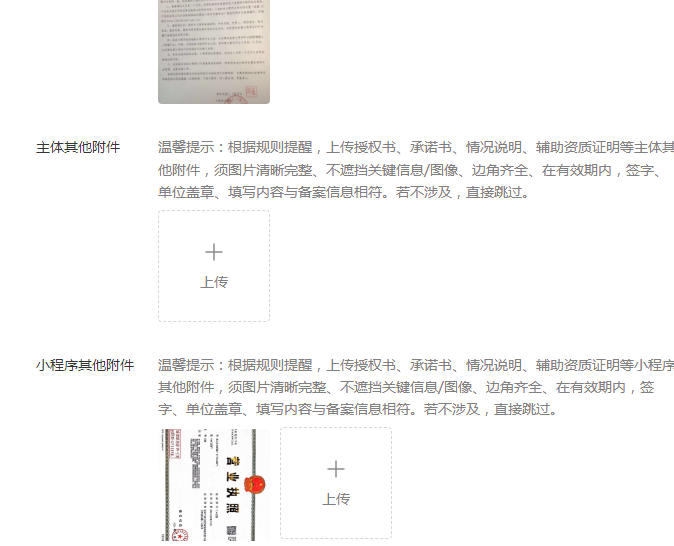 每次弄备案还要找老板、负责人拿验证码、人脸识别,很麻烦,我就直接上传在小程序其他附件上了