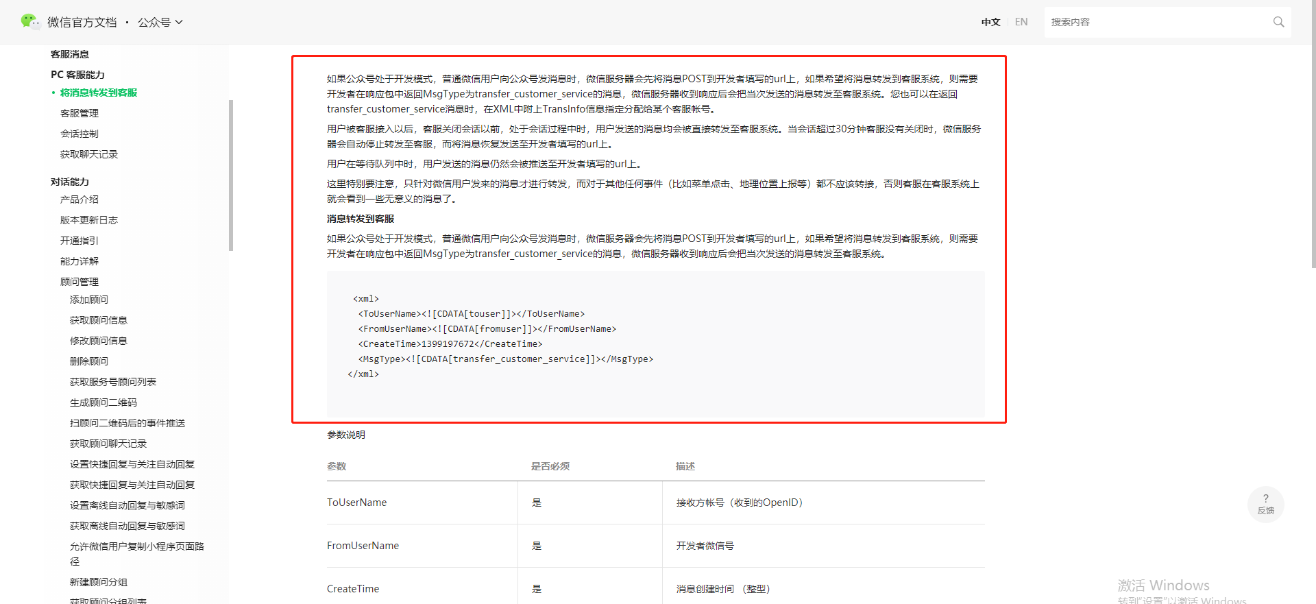 转发到客服,客服一直收不到消息,接收json,返回json。