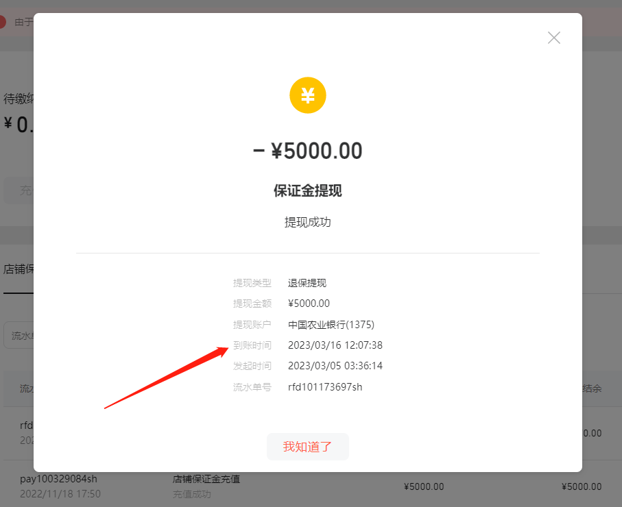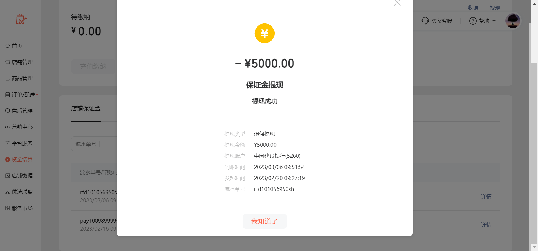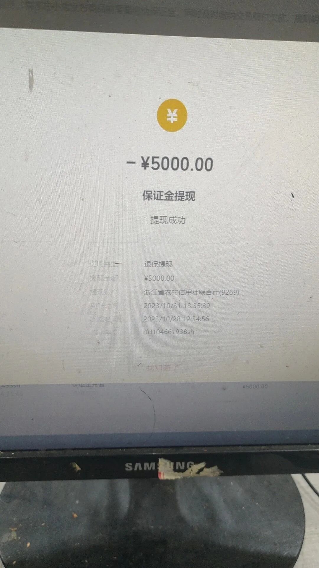 说了无数遍了,银行卡正常! 我货款提现也正常!就保证金这2000蒸发了一样,