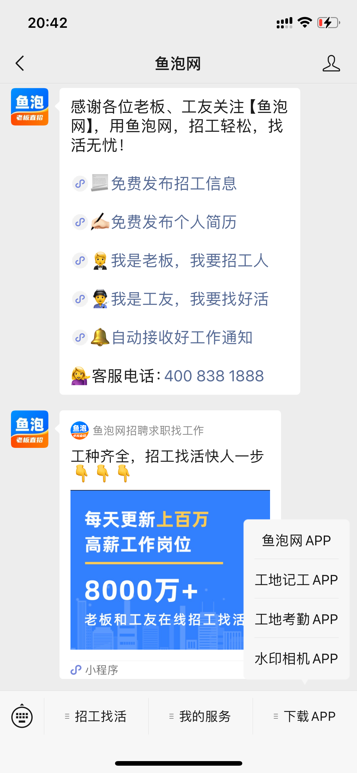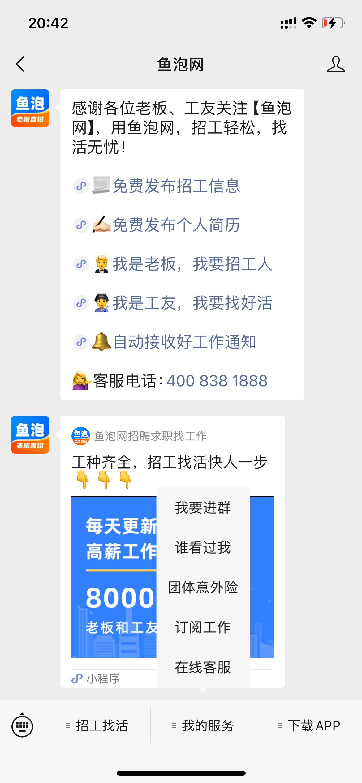 我们是一家上市公司!鱼泡网做招聘内容app的、服务号菜单栏可以直接进入我们鱼泡网、折叠服务号导致我们的用户收不到消息、公众号菜单栏用户也看不到相关入口,导致我公司数据受到严重的影响、现在大环境不好、微信涉及垄断罪,请整改、不整改我公司法务团队会对腾讯微信进行起诉