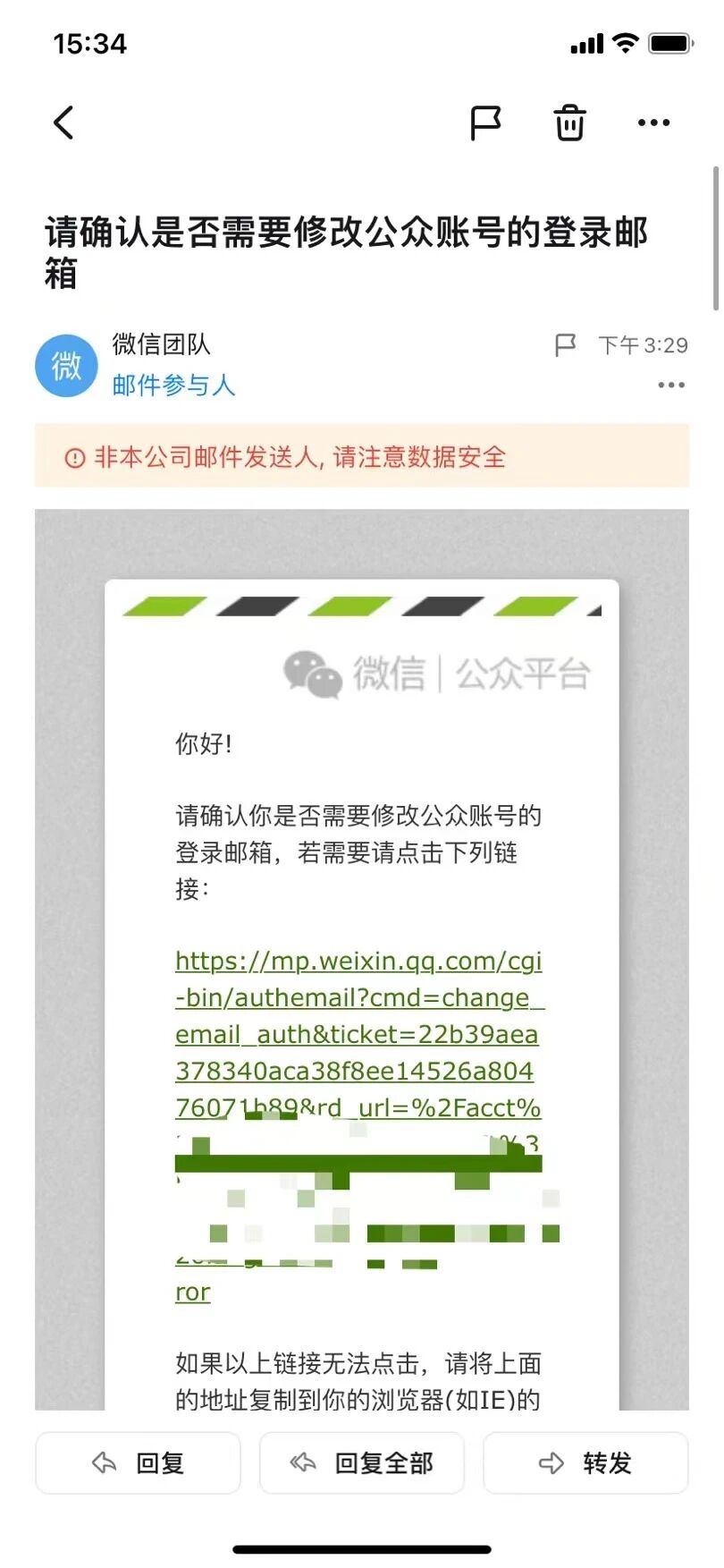 这边经营的两个公众号,一个是服务号,一个是订阅号。服务号绑定的是我的工作邮箱(A),订阅号绑定的是公司邮箱(B)。