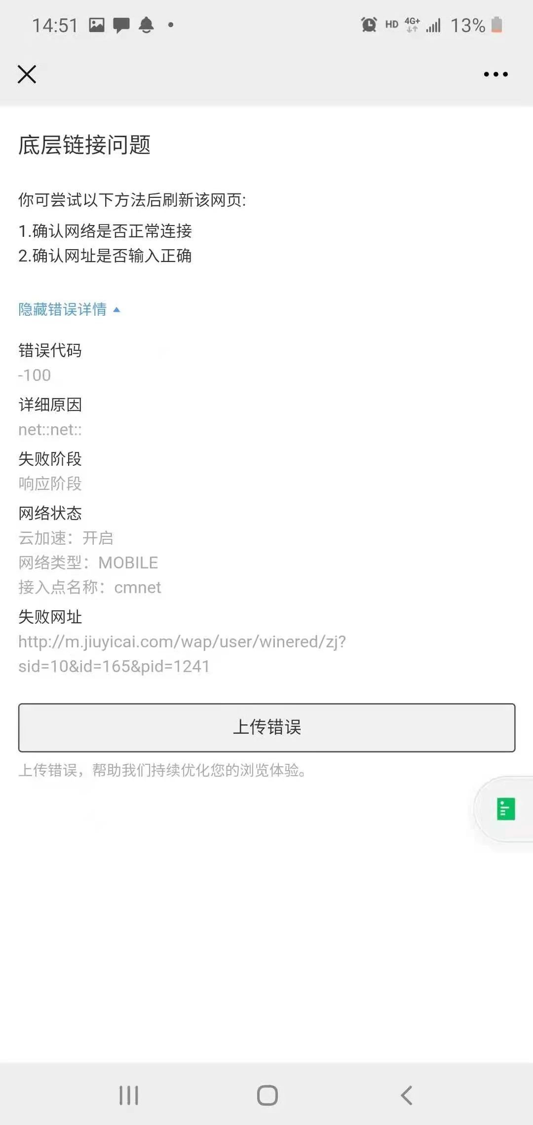 个别的微信用户打开链接的时候出现无法打开网页,然后清理缓存之后又可以打开,是因为我cookie设置太多,还是缓存的图片内存太多造成的吗?这种有什么办法解决吗?出现的图片情况如下: