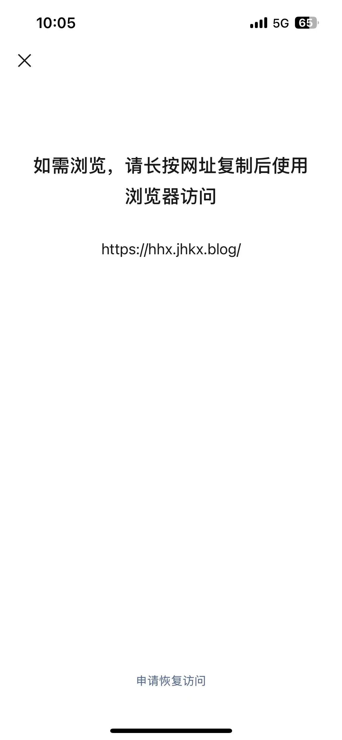 https://hhx.jhkx.blog/,域名并未有违规,但在微信内无法直接访问,出现被拦截,需要能恢复访问@微信朋友圈&外链咨询