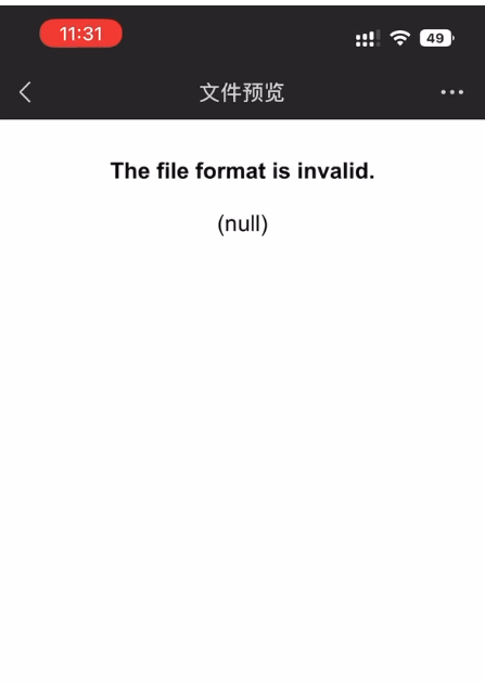 docx文档通过wx.downloadfile下载后用wx.openDocument预览,在其他设备未发现问题,但是IOS16.0.2的iphone14上无法预览。此时通过右上角的按钮选择“使用其他应用打开”,是可以正常打开该docx文档的。