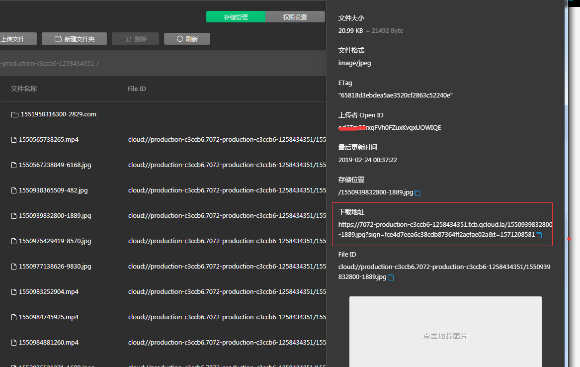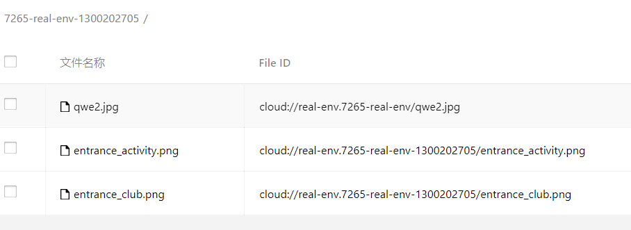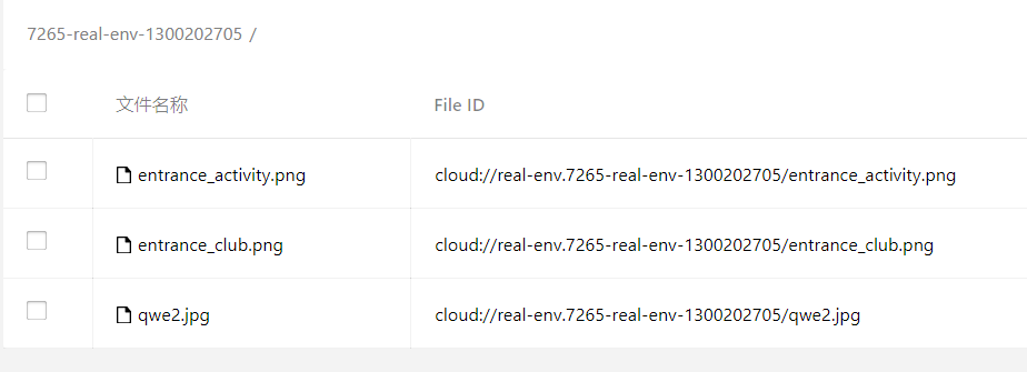 然后点了一下刷新,File ID变成了:cloud://real-env.7265-real-env-1300202705/qwe2.jpg