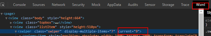 “current"是在拉动时出现的一个属性,可以在Wxml里面看到,