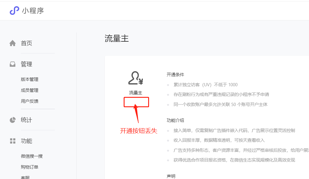 我有两个是这样的,按钮丢失了,appid分别是wxeb2b01ff3de30fad和wx57d3ba19a096fde2,麻烦处理下