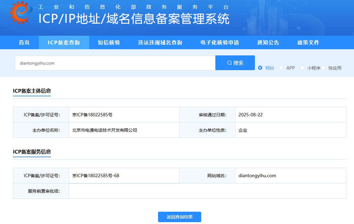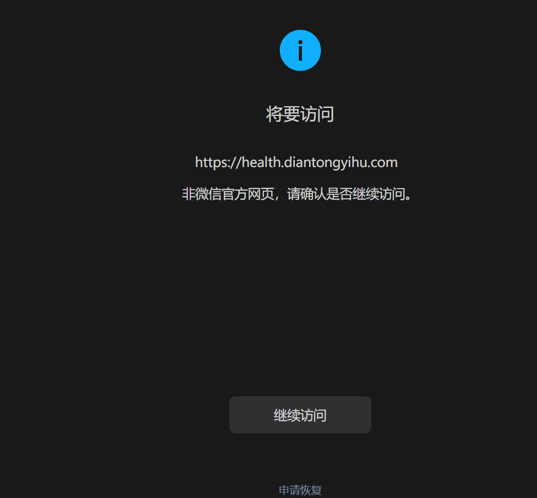 微信访问https://doctorquery.diantongyihu.com/hospital_sys网页时提示“非微信官方网页,请确认是否继续访问”,多次反复出现这个问题,域名health.diantongyihu.com已经工信部及公安部备案如下图,请核实