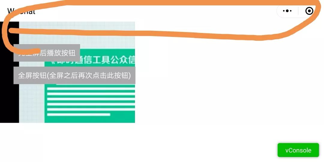 点第一个按钮,进入全屏播放, 再全屏的时候点第二个按钮,再用安卓home键退出全屏就会出现视频退出全屏了,但是小程序还是横屏的