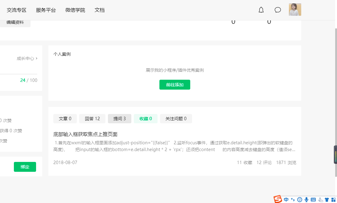 2.收藏了之前发表的文章 收藏显示为0 实际为页面显示收藏有一条