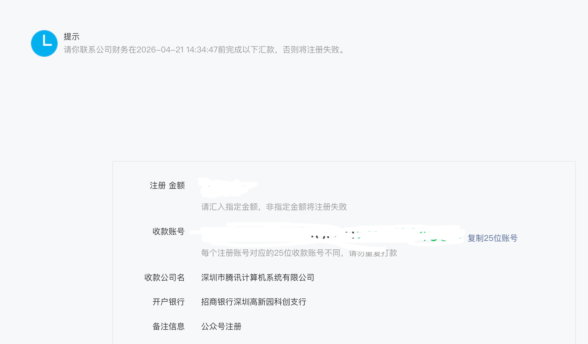 是的,需要按照指定时间打款,否则就注册失败啦