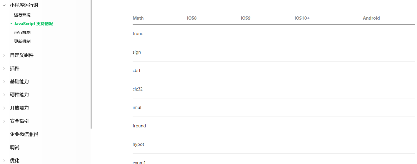 https://developers.weixin.qq.com/miniprogram/dev/framework/runtime/js-support.html