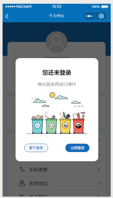 自定义一个弹框组件,一个暂不登录,一个立即登录按钮,用户点击后显示这个组件,点击组件里的立即登录再微信授权登录