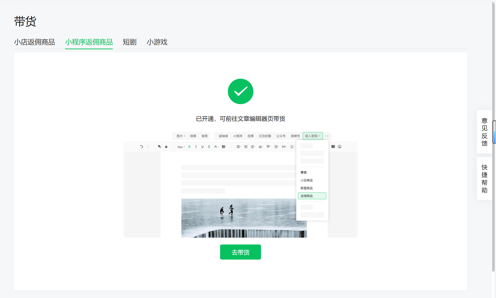 公众号返佣商品与程序化广告一起结算,结算至流量主后台绑定的结算银行账户。
