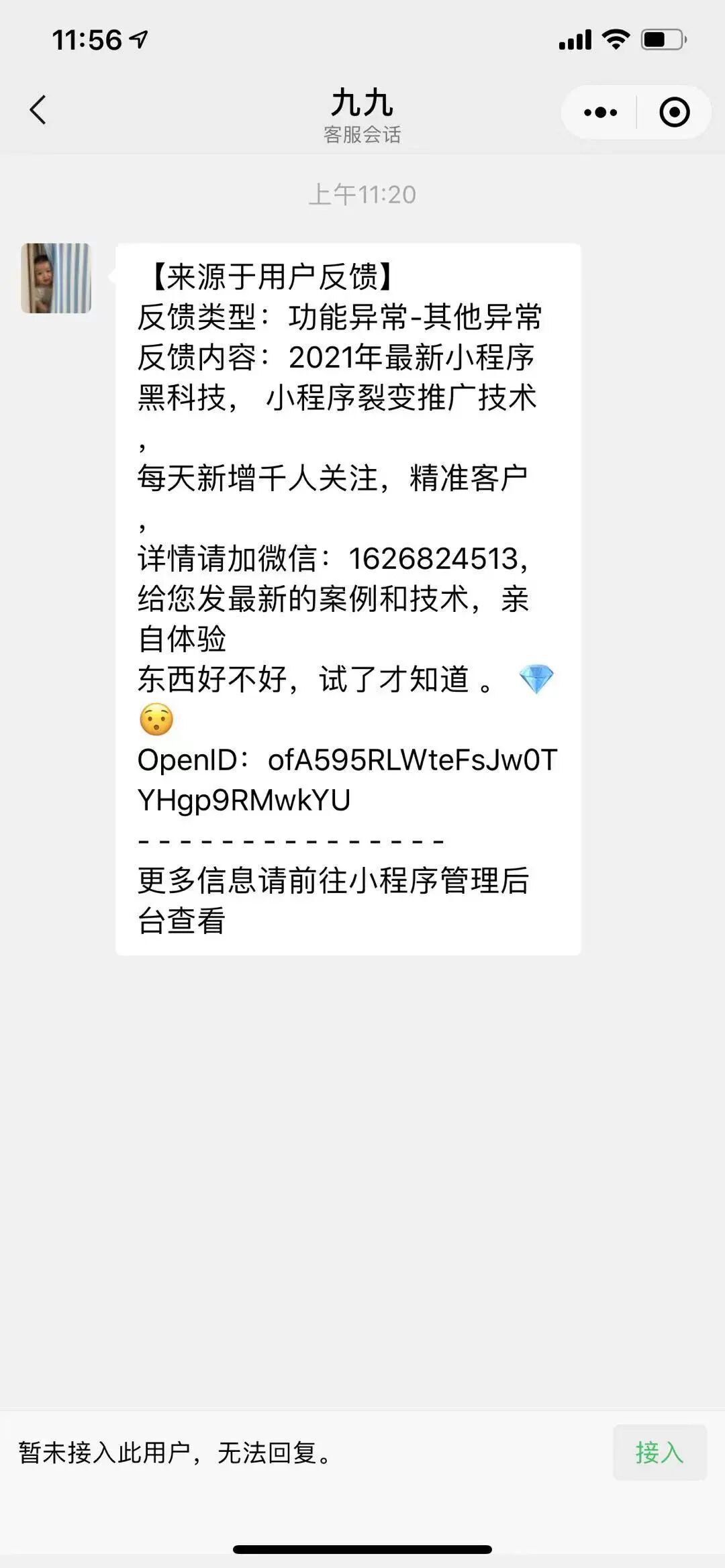 您好,我想投诉一下,这个人一直我的小程序反馈这种问题,让别人加微信