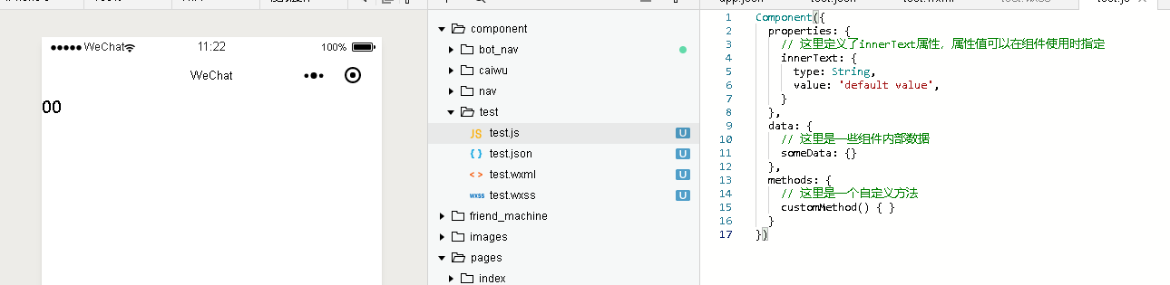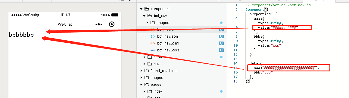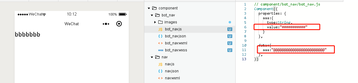 举个例子,加入自定义组件test有两个properties,分别是a和b: