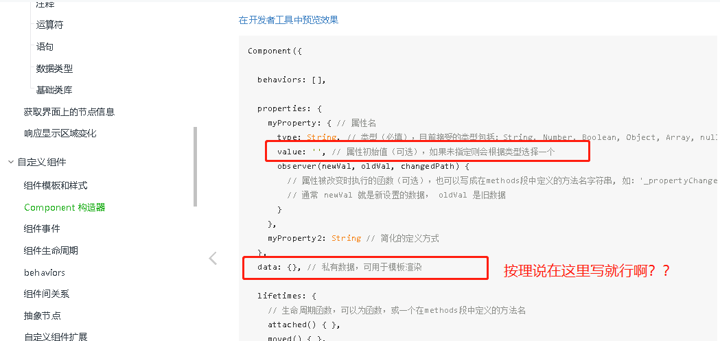 使用自定义组件,本来想在组件里传默认数据,结果就是不成功,也不知道哪里的问题,求大佬解答。