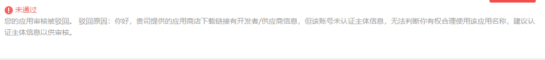 你好,驳回指引已很明确。已上架应用需认证主体以供审核。open账号进行主体信息认证指引https://kf.qq.com/faq/170824URbmau170824r2uY7j.html