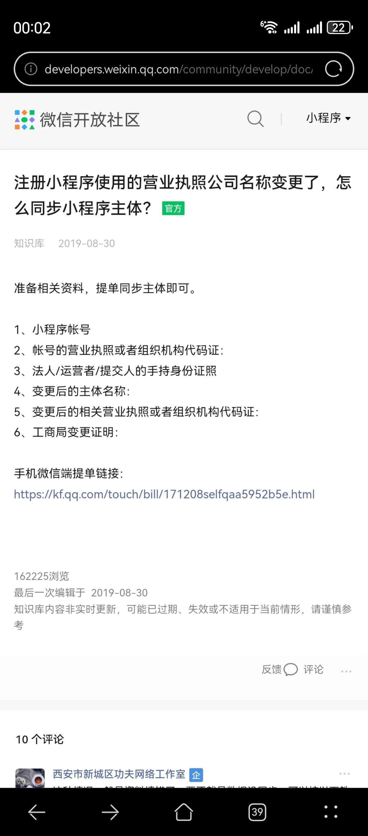 小程序修改备案信息 因为名称有(个体工商户)所以一直通不过?wxefc46eeba132aa73因为营业执照修改了名称 现在需要修改一下小程序备案信息 营业执照名称 太原市小店区自游易惠销售店(个体工商户) 小程序名称修改都按照这个通过了 太原市小店区自游易惠销售店(个体工商户) 直接复制小程序主体信息填写也不下行 老是提示下面这个【主体名称】工商数据对比不通过,如带有标点符号或字母,请检查中、英文标点符号和字母大小写 但是 这个括号 我都修改了大小写 和你英文标点符号都不行(个体工商户)怎么解 这个微信客服提单链接怎么了找不到啊