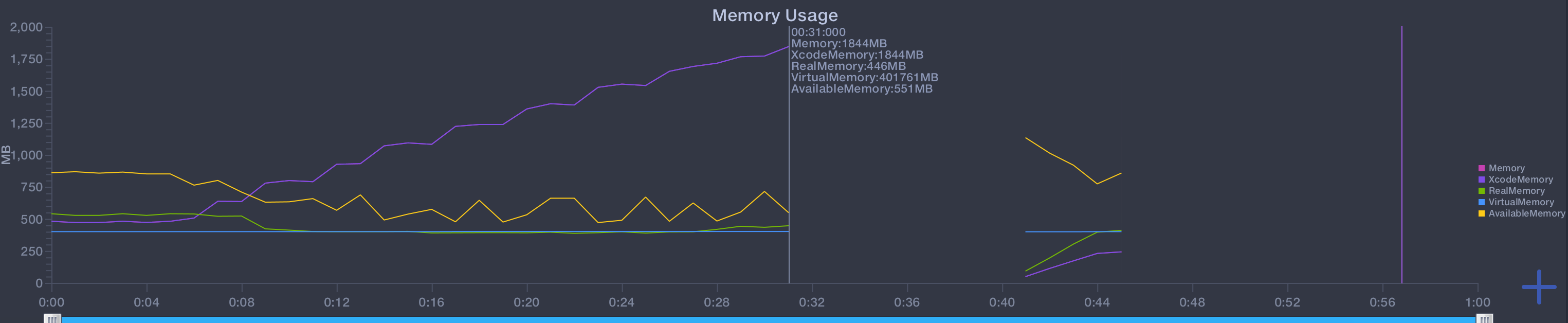 可复现代码片段如下,打开后点击用户头像后会进入一个有20个echarts图表的页面,然后退到上一页,然后再点击头像。如此操作大概13个来回会提示运行内存不足或者直接闪退。