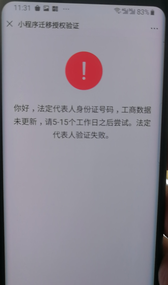 小程序迁移问题 原主体与目标主体同一法定代表人时,原主体无法验证工商数据。