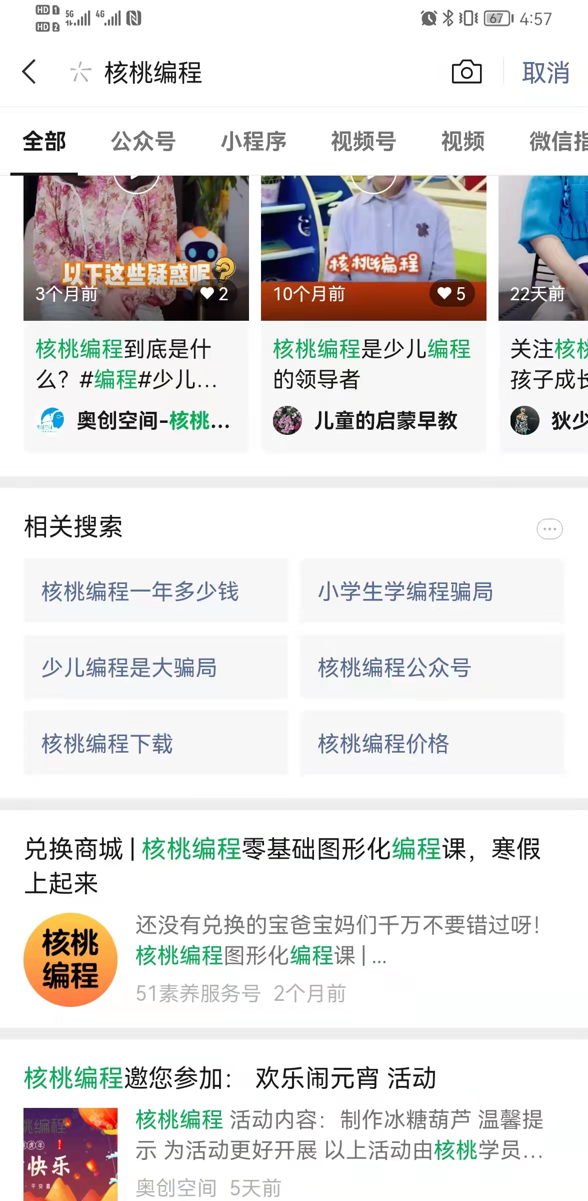 在搜一搜里搜索“核桃编程”时出现:“少儿编程大骗局”、“小学生学编程骗局”的词语,这些相关搜索词,都是与我们品牌词,搜索词不相关的,对我们公司品牌造成了严重的负面影响。用户以为是我们公司的不良信息呢。