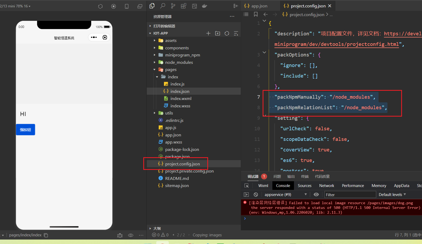 如果点 工具——>构建npm失败,需要在project.config.json添加两个配置