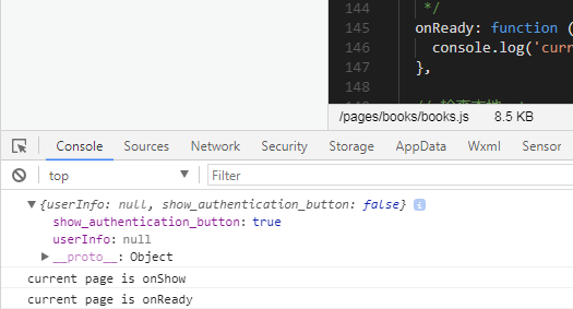 在app.js中验证登录态与session_key。一切完成之后,把一个button的显示态动态写入globalData中(因为后续多个页面需要使用登录,因此放在这里,用于页面间传值);