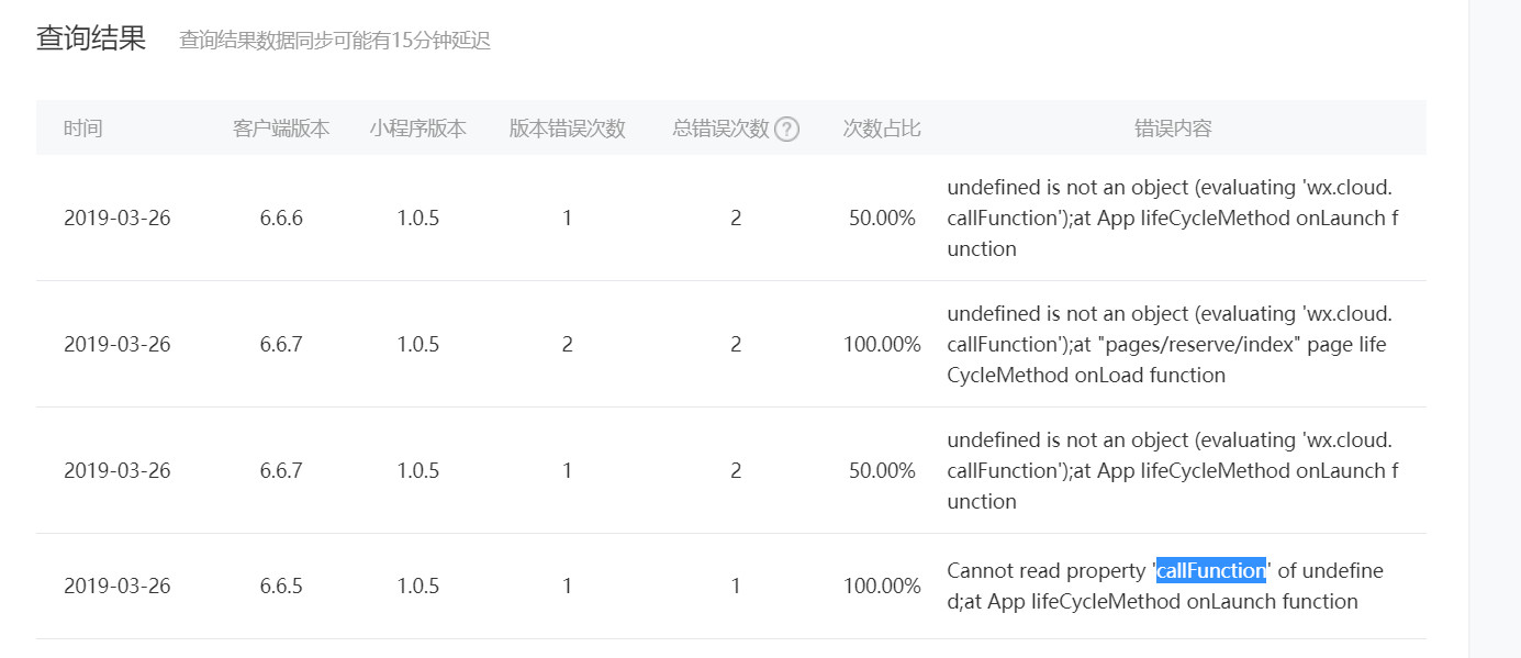 运维中心-日志查询中可以看到如下的错误,无法访问 wx.cloud.callFunction方法