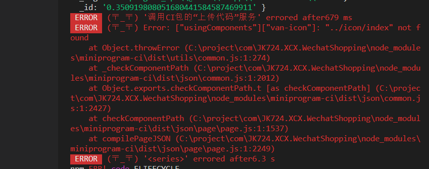 (node:23640) UnhandledPromiseRejectionWarning: Error: ["usingComponents"]["van-icon"]: "../icon/index" not found