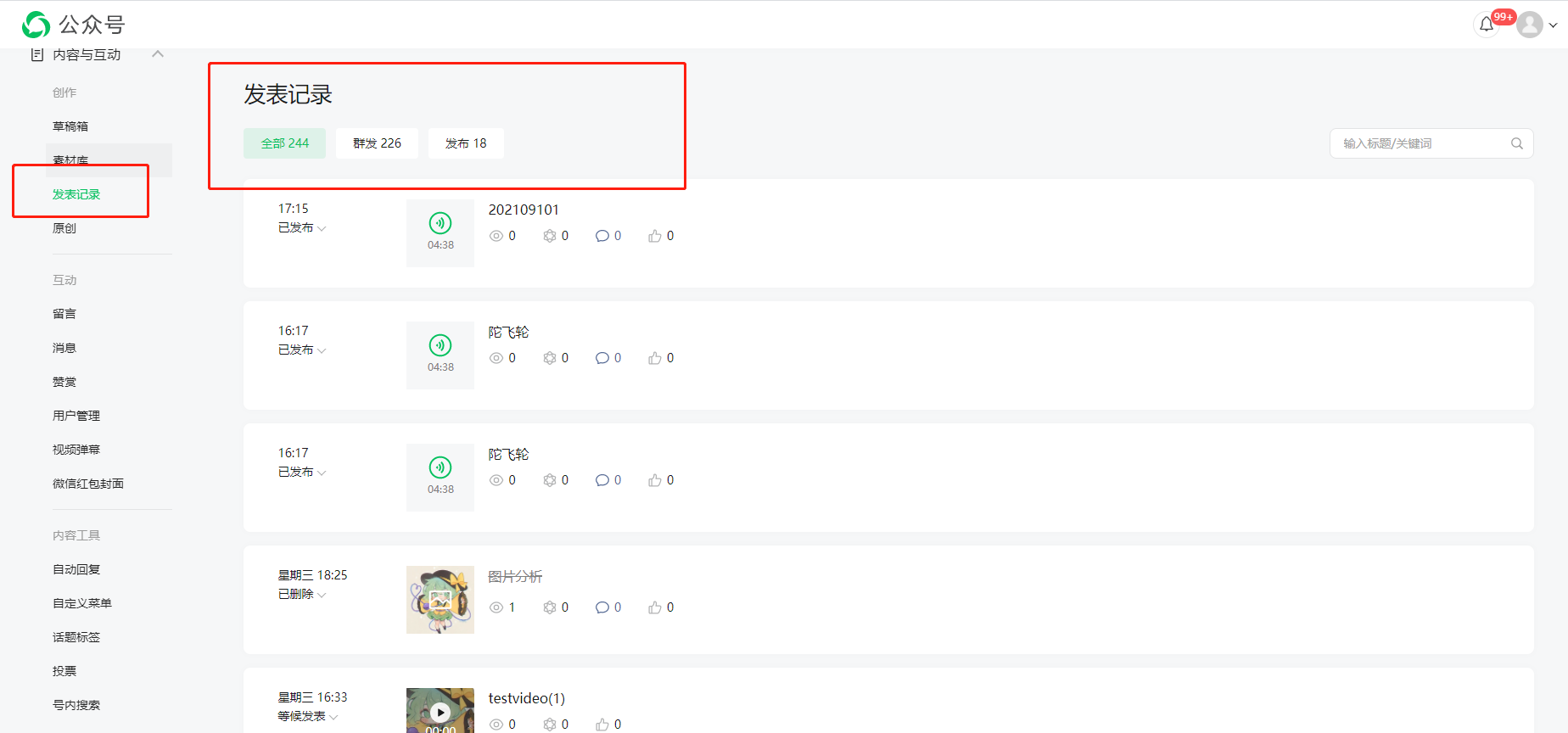 赶紧把“发布”改为“初稿”,初稿就是自己看。“群发”改为“群发布”。