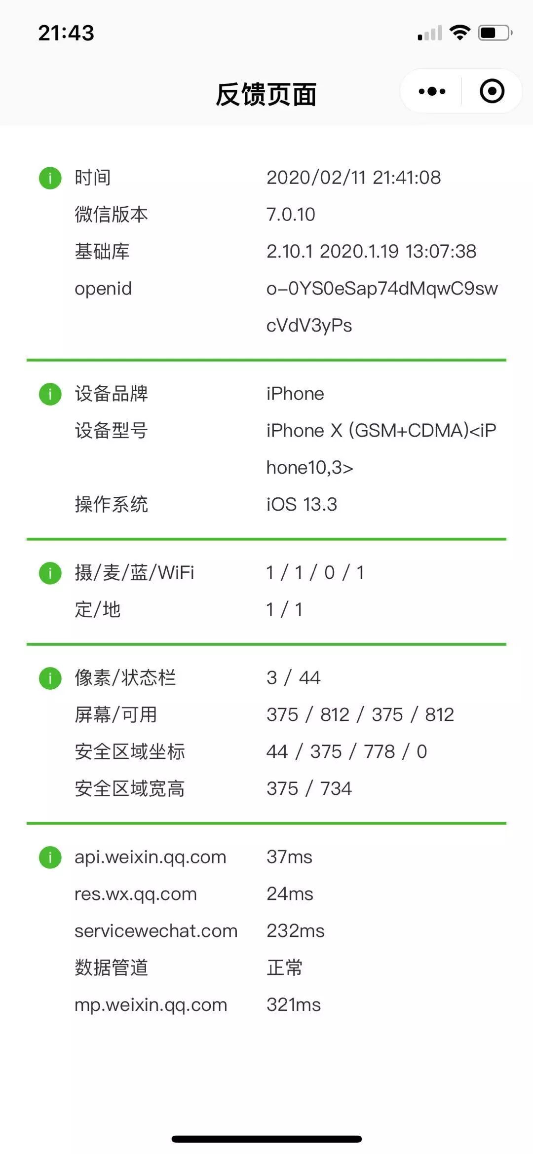 3、iphoneX,系统版本13.3,微信版本7.0.10,有画面没声音