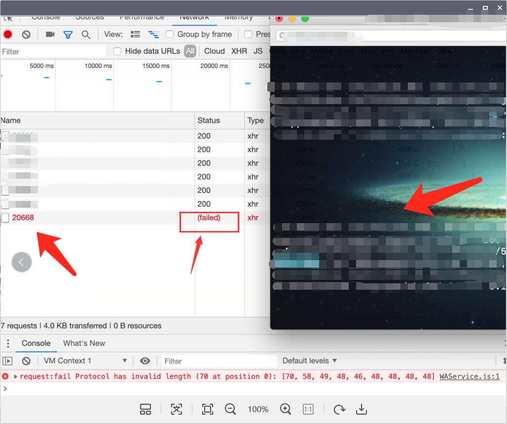 出现该错误时:控制台显示failed,response为空,通过查看nginx日志、抓包以及后端接口日志打印,都没有看到关于这个错误请求的信息。