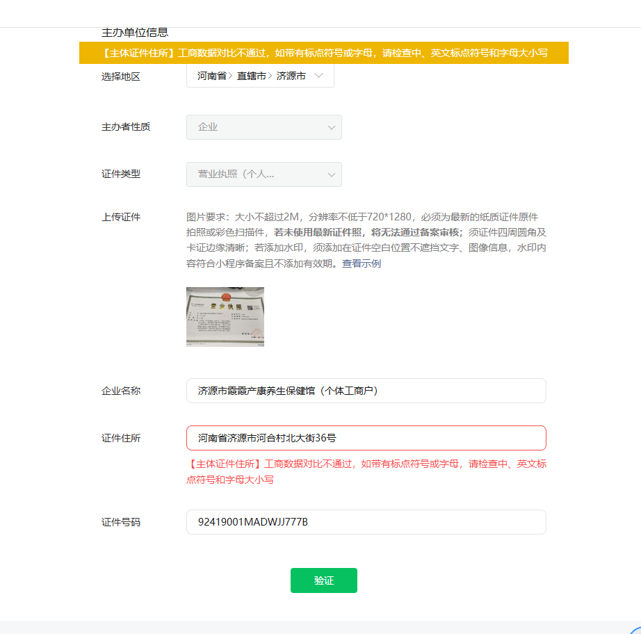 【主体证件住所】工商数据对比不通过,如带有标点符号或字母 各种格式都切换了不行 也从天眼查等网站复制粘贴过来也不行 一直提示这个