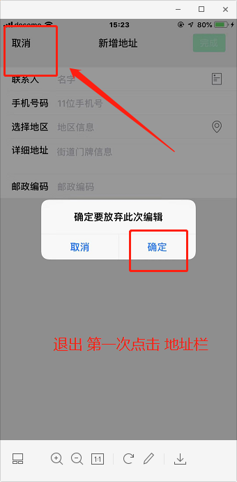 第一次点击【地址栏】进入的页面,根据微盟技术反馈,该界面属于腾讯,需要腾讯更新海外地址,或者将这层【地址栏】删除。
