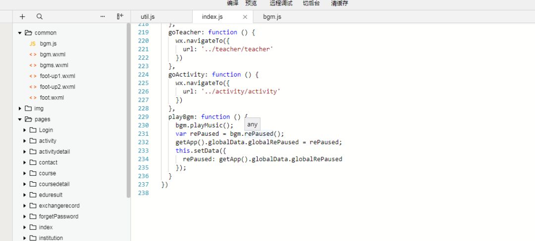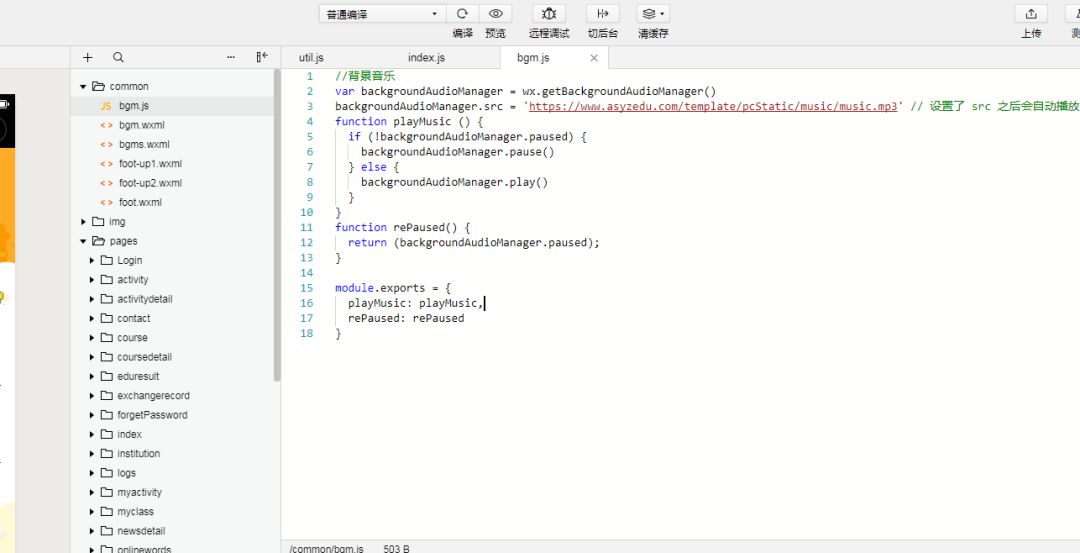 图一是自己封装的背景音乐,图二是在index中调用的,我在所有页面中都调用了这个背景音乐的方法。