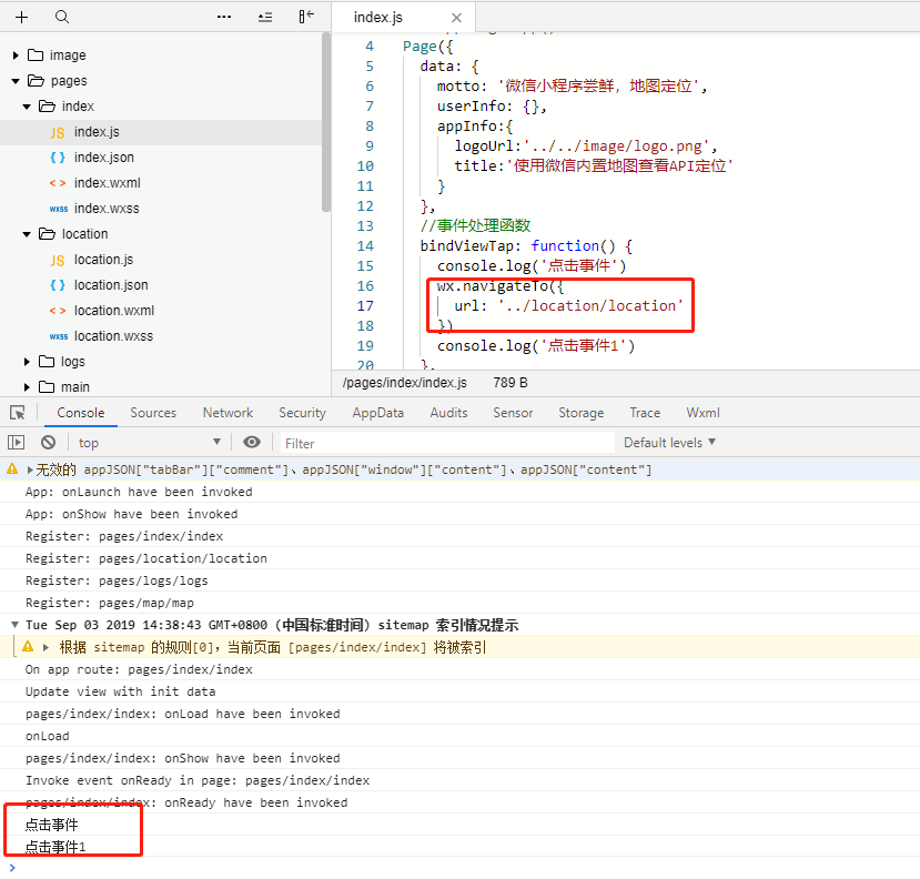 navigateTo,redirectTo只能打开非 tabBar 页面。switchTab只能打开 tabBar 页面。reLaunch可以打开任意页面。首先确定是page页还是tabar ,page url需要写成/page/location/location, tabar的话 你要wx.switchTab /page/location/location