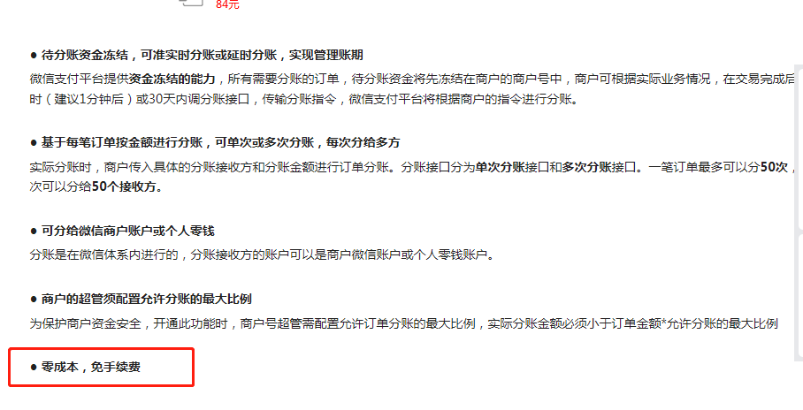 分账产品说明中,流程图中体现了分账支付手续费,而下文说明中,提到了零成本免手续费,官方确认下分账是否有 手续费