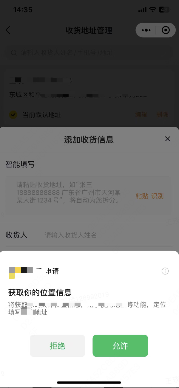收货地址可以申请获取用户收货地址api,不需要获取用户当前位置