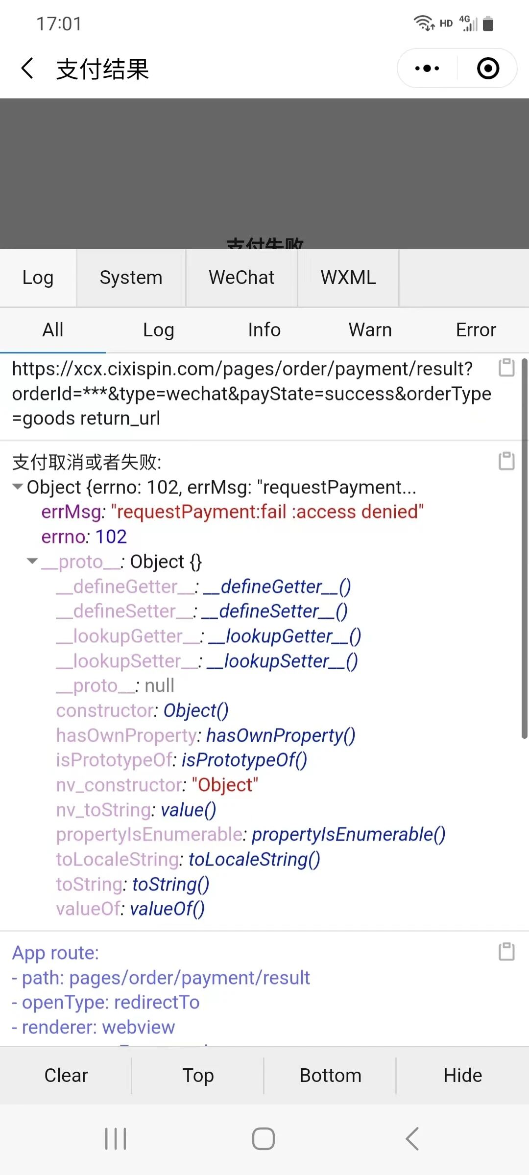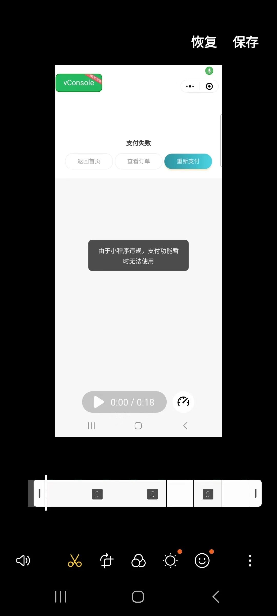 开发者工具是可以支付的,说明接口调用正确,体验版、正式版都是微信违规,支付受限。对接了上传信息接口还是不行。报错订单找不到。