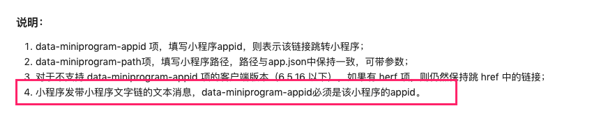 小游戏客服消息发送文本链接,跳转至另一小程序时报以下错误:“{"errcode":45086,"errmsg":"invalid attrbute \'data-miniprogram-appid\' hint: [TFohAa00970356]"}”