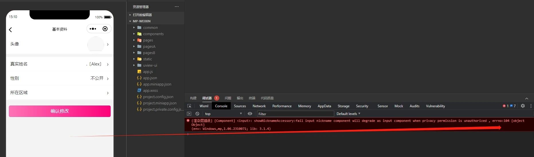 获取昵称提示:showNicknameAccessory:fail api scope is not declared in the privacy agreement, errno:112