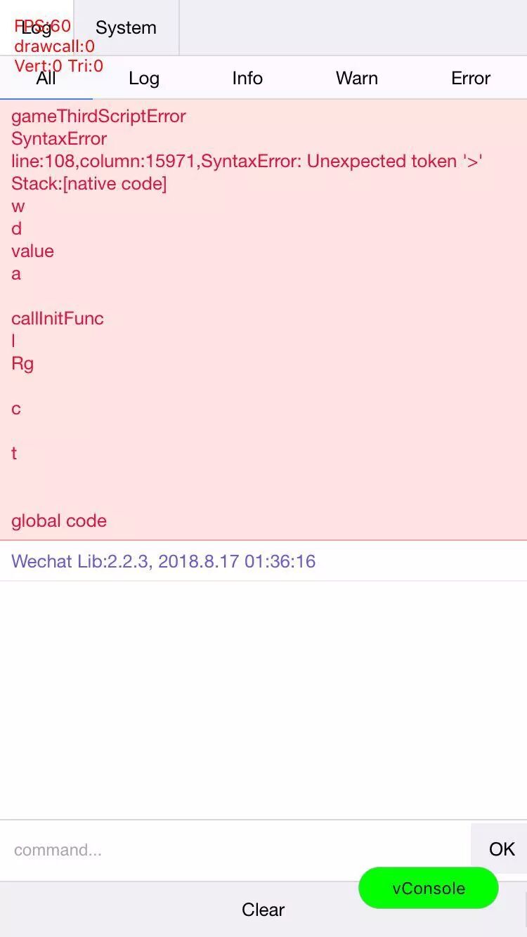 iphone 6s 使用体验版的小游戏,点进去后如上图,无法进入游戏,在微信开发者工具端可以正常进入。测试了十几个人唯独这个手机进不来,这个错误是什么意思,如何解决呢?
