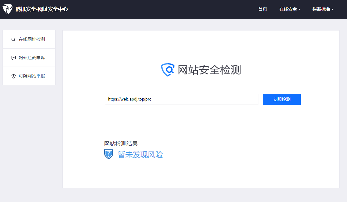 当前域名以及域名下的活动页在微信内访问网站出现“无法确认该网页的安全性,请谨慎访问”的拦截提示,网站符合《微信外部链接内容管理规范》,腾讯安全网址安全中心检测网页没有不安全的内容,请求核实后解除在微信内的访问拦截提示,谢谢
