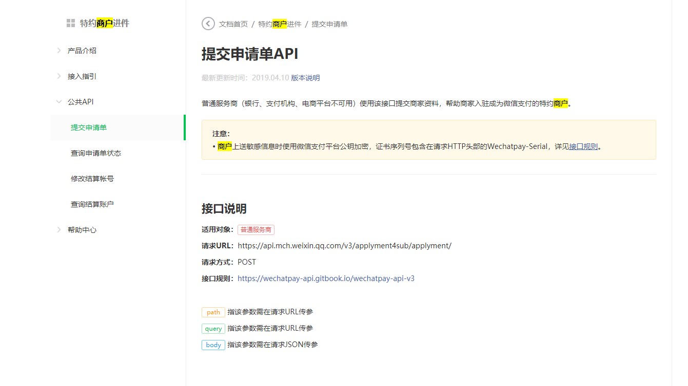 /** * @param id 商户ID * @param cid 营业员ID * @param store 更新商户详情 * @return 商户详情 */ @Transactional @PostMapping(value = {"stores/{id}/setMerchant"}) public Work<Store> setMerchant(@PathVariable String id, @RequestParam String cid, @RequestBody Store store) throws ServiceException, WxPayException { Merchant merchant = store.getMerchant(); /* 超级管理员 */ WxPayApplyment4SubCreateRequest.ContactInfo contactInfo = WxPayApplyment4SubCreateRequest.ContactInfo.builder() .contactEmail(merchant.getContactEmail()) .contactIdNumber(merchant.getContactIdNumber()) .contactName(merchant.getContactName()) .mobilePhone(merchant.getMobilePhone()) .build(); /* 营业执照 */ WxPayApplyment4SubCreateRequest.SubjectInfo.BusinessLicenseInfo businessLicenseInfo = WxPayApplyment4SubCreateRequest.SubjectInfo.BusinessLicenseInfo.builder() .legalPerson(merchant.getLegalPerson()) .licenseCopy(merchant.getLicenseCopy().getMediaId()) .licenseNumber(merchant.getLicenseNumber()) .merchantName(merchant.getMerchantName()) .build(); /* 身份证信息 */ WxPayApplyment4SubCreateRequest.SubjectInfo.IdentityInfo.IdCardInfo idCardInfo = WxPayApplyment4SubCreateRequest.SubjectInfo.IdentityInfo.IdCardInfo.builder() .idCardCopy(merchant.getIdCardCopy().getMediaId()) .idCardNumber(merchant.getIdCardNumber()) .idCardName(merchant.getIdCardName()) .idCardNational(merchant.getIdCardNational().getMediaId()) .cardPeriodBegin(merchant.getCardPeriodBegin()) .cardPeriodEnd(merchant.getCardPeriodEnd()) .build(); /* 经营者/法人身份证件 */ WxPayApplyment4SubCreateRequest.SubjectInfo.IdentityInfo identityInfo = WxPayApplyment4SubCreateRequest.SubjectInfo.IdentityInfo.builder() .idCardInfo(idCardInfo) .idDocType(IdTypeEnum.IDENTIFICATION_TYPE_IDCARD) .owner(true) .build(); /* 1.主体资料 */ WxPayApplyment4SubCreateRequest.SubjectInfo subjectInfo = WxPayApplyment4SubCreateRequest.SubjectInfo.builder() .businessLicenseInfo(businessLicenseInfo) .identityInfo(identityInfo) .subjectType(merchant.getSubjectType()) .build(); /* 小程序场景 */ WxPayApplyment4SubCreateRequest.BusinessInfo.SalesInfo.MiniProgramInfo miniProgramInfo = WxPayApplyment4SubCreateRequest.BusinessInfo.SalesInfo.MiniProgramInfo.builder() .miniProgramAppid(merchant.getMiniProgramAppid()) .miniProgramPics(merchant.getMiniProgramPics().stream().map(Picture::getMediaId).collect(Collectors.toList())) .build(); /* 经营场景 */ WxPayApplyment4SubCreateRequest.BusinessInfo.SalesInfo salesInfo = WxPayApplyment4SubCreateRequest.BusinessInfo.SalesInfo.builder() .salesScenesType(Collections.singletonList(SalesScenesTypeEnum.SALES_SCENES_MINI_PROGRAM)) .miniProgramInfo(miniProgramInfo) .build(); /* 2.经营资料 */ WxPayApplyment4SubCreateRequest.BusinessInfo businessInfo = WxPayApplyment4SubCreateRequest.BusinessInfo.builder() .merchantShortname(merchant.getMerchantShortname()) .servicePhone(merchant.getServicePhone()) .salesInfo(salesInfo) .build(); /* 结算规则 */ WxPayApplyment4SubCreateRequest.SettlementInfo settlementInfo = WxPayApplyment4SubCreateRequest.SettlementInfo.builder() .settlementId(merchant.getSettlementId()) .qualificationType(merchant.getQualificationType()) .qualifications(merchant.getQualifications().stream().map(Picture::getMediaId).collect(Collectors.toList())) .build(); String[] code = merchant.getBankAddress().getCode(); /* 结算银行账户 */ WxPayApplyment4SubCreateRequest.BankAccountInfo bankAccountInfo = WxPayApplyment4SubCreateRequest.BankAccountInfo.builder() .accountBank(merchant.getAccountBank()) .accountName(merchant.getAccountName()) .accountNumber(merchant.getAccountNumber()) .bankAccountType(merchant.getBankAccountType()) .bankAddressCode(Arrays.stream(merchant.getBankAddress().getCode()).skip(code.length - 1).findFirst().orElseThrow(() -> new ServiceException("fail", "银行地址编号错误"))) .bankName(merchant.getBankName()) .build(); wechatConfiguration.initServices(); WxPayService wxPayService = WechatConfiguration.wxPayServiceMap.get("wxe78290c2a5313de3"); WxPayConfig wxPayConfig = wxPayService.getConfig(); String businessCode = wxPayConfig.getMchId().concat("_").concat(id); WxPayApplyment4SubCreateRequest wxPayApplyment4SubCreateRequest = WxPayApplyment4SubCreateRequest.builder() .contactInfo(contactInfo) .subjectInfo(subjectInfo) .businessInfo(businessInfo) .settlementInfo(settlementInfo) .bankAccountInfo(bankAccountInfo) .businessCode(businessCode) .build(); Applyment4SubService applyment4SubService = new Applyment4SubServiceImpl(wxPayService); WxPayApplymentCreateResult wxPayApplymentCreateResult = applyment4SubService.createApply(wxPayApplyment4SubCreateRequest); Update updateStore = Update.update("merchant", merchant) .set("businessCode", businessCode) .set("state", store.getState()) .set("updateTime", LocalDateTime.now()) .set("licenseNumber", merchant.getLicenseNumber()) .set("licenseCopy", merchant.getLicenseCopy()) .set("applymentId", wxPayApplymentCreateResult.getApplymentId()); Query queryStore = Query.query(Criteria .where("id").is(id) .and("state").in(ApplymentStateEnum.APPLYMENT_STATE_REJECTED, ApplymentStateEnum.APPLYMENT_STATE_EDITTING, null)); mongoTemplate.updateFirst(queryStore, updateStore, Store.class); return Work.success("编辑成功", store); }这个我不清楚